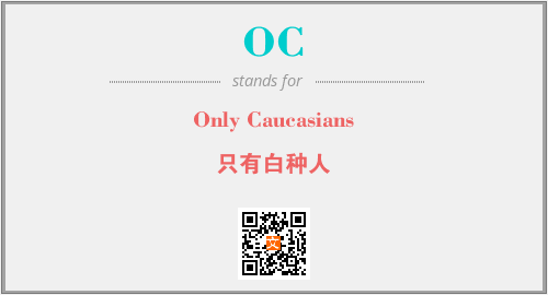 上述内容是“Only Caucasians”作为“OC”的缩写,解释为“只有白种人”时的信息,以及英文缩略词OC所代表的英文单词,其对应的中文拼音、详细解释以及在英文中的流行度和相关分类、应用领域及应用示例等。