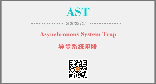 英文缩略词“AST”经常作为“Asynchronous System Trap”的英文缩写来使用,中文表示:“异步系统陷阱”。本文将详细介绍英文缩写词AST所代表英文单词,其对应的中文拼音、详细解释以及在英语中的流行度。此外,还有关于缩略词AST的分类、应用领域及相关应用示例等。