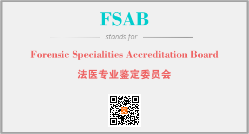 上述内容是“Forensic Specialities Accreditation Board”作为“FSAB”的缩写,解释为“法医专业鉴定委员会”时的信息,以及英文缩略词FSAB所代表的英文单词,其对应的中文拼音、详细解释以及在英文中的流行度和相关分类、应用领域及应用示例等。
