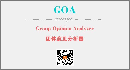 上述内容是“Group Opinion Analyzer”作为“GOA”的缩写,解释为“团体意见分析器”时的信息,以及英文缩略词GOA所代表的英文单词,其对应的中文拼音、详细解释以及在英文中的流行度和相关分类、应用领域及应用示例等。