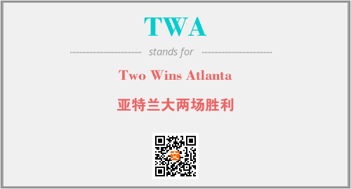 英文缩略词“TWA”经常作为“Two Wins Atlanta”的英文缩写来使用,中文表示:“亚特兰大两场胜利”。本文将详细介绍英文缩写词TWA所代表英文单词,其对应的中文拼音、详细解释以及在英语中的流行度。此外,还有关于缩略词TWA的分类、应用领域及相关应用示例等。