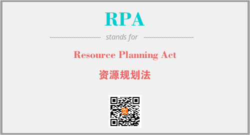 上述内容是“Resource Planning Act”作为“RPA”的缩写,解释为“资源规划法”时的信息,以及英文缩略词RPA所代表的英文单词,其对应的中文拼音、详细解释以及在英文中的流行度和相关分类、应用领域及应用示例等。