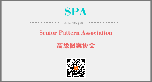 上述内容是“Senior Pattern Association”作为“SPA”的缩写,解释为“高级图案协会”时的信息,以及英文缩略词SPA所代表的英文单词,其对应的中文拼音、详细解释以及在英文中的流行度和相关分类、应用领域及应用示例等。
