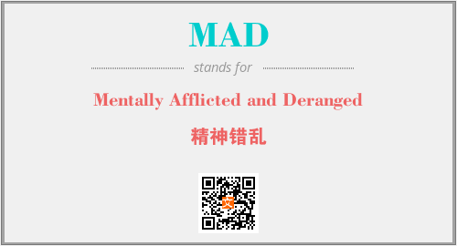 英文缩略词“MAD”经常作为“Mentally Afflicted and Deranged”的英文缩写来使用,中文表示:“精神错乱”。本文将详细介绍英文缩写词MAD所代表英文单词,其对应的中文拼音、详细解释以及在英语中的流行度。此外,还有关于缩略词MAD的分类、应用领域及相关应用示例等。