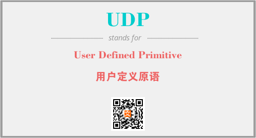 英文缩略词“UDP”经常作为“User Defined Primitive”的英文缩写来使用,中文表示:“用户定义原语”。本文将详细介绍英文缩写词UDP所代表英文单词,其对应的中文拼音、详细解释以及在英语中的流行度。此外,还有关于缩略词UDP的分类、应用领域及相关应用示例等。