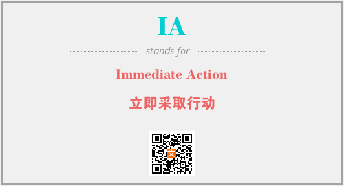 英文缩略词“IA”经常作为“Immediate Action”的英文缩写来使用,中文表示:“立即采取行动”。本文将详细介绍英文缩写词IA所代表英文单词,其对应的中文拼音、详细解释以及在英语中的流行度。此外,还有关于缩略词IA的分类、应用领域及相关应用示例等。