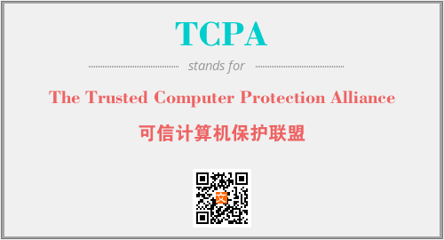 英文缩略词“TCPA”经常作为“The Trusted Computer Protection Alliance”的英文缩写来使用,中文表示:“可信计算机保护联盟”。本文将详细介绍英文缩写词TCPA所代表英文单词,其对应的中文拼音、详细解释以及在英语中的流行度。此外,还有关于缩略词TCPA的分类、应用领域及相关应用示例等。