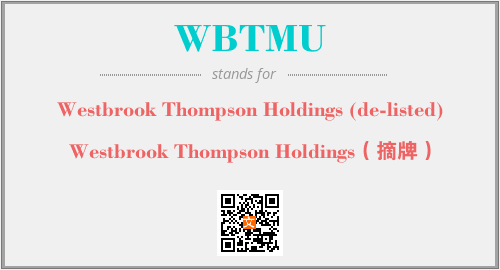 上述内容是“Westbrook Thompson Holdings (de-listed)”作为“WBTMU”的缩写,解释为“Westbrook Thompson Holdings(摘牌)”时的信息,以及英文缩略词WBTMU所代表的英文单词,其对应的中文拼音、详细解释以及在英文中的流行度和相关分类、应用领域及应用示例等。