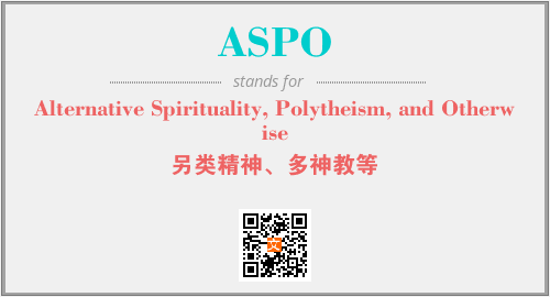 上述内容是“Alternative Spirituality, Polytheism, and Otherwise”作为“ASPO”的缩写,解释为“另类精神、多神教等”时的信息,以及英文缩略词ASPO所代表的英文单词,其对应的中文拼音、详细解释以及在英文中的流行度和相关分类、应用领域及应用示例等。