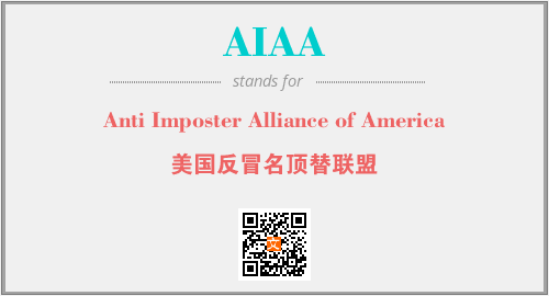 以上为Anti Imposter Alliance of America英文缩略词AIAA的中文解释,以及该英文缩写在英语的流行度、分类和应用领域方面的信息。