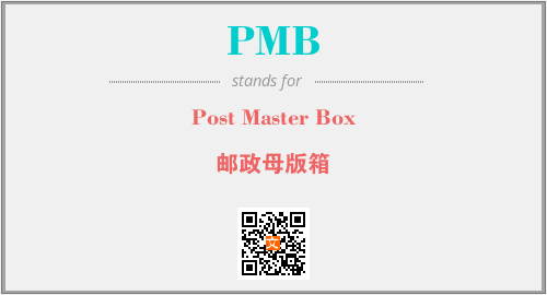 英文缩略词“PMB”经常作为“Post Master Box”的英文缩写来使用,中文表示:“邮政母版箱”。本文将详细介绍英文缩写词PMB所代表英文单词,其对应的中文拼音、详细解释以及在英语中的流行度。此外,还有关于缩略词PMB的分类、应用领域及相关应用示例等。
