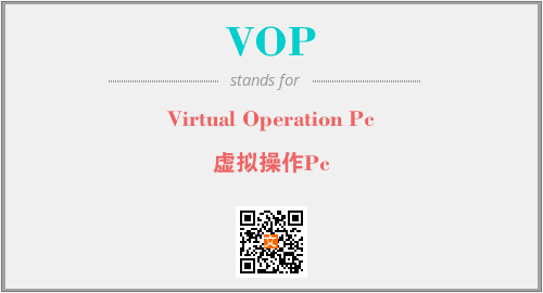 英文缩略词“VOP”经常作为“Virtual Operation Pc”的英文缩写来使用,中文表示:“虚拟操作Pc”。本文将详细介绍英文缩写词VOP所代表英文单词,其对应的中文拼音、详细解释以及在英语中的流行度。此外,还有关于缩略词VOP的分类、应用领域及相关应用示例等。