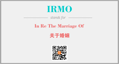 以上为In Re The Marriage Of英文缩略词IRMO的中文解释,以及该英文缩写在英语的流行度、分类和应用领域方面的信息。