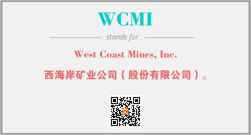 上述内容是“West Coast Mines, Inc.”作为“WCMI”的缩写,解释为“西海岸矿业公司(股份有限公司)。”时的信息,以及英文缩略词WCMI所代表的英文单词,其对应的中文拼音、详细解释以及在英文中的流行度和相关分类、应用领域及应用示例等。