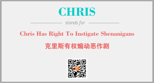 上述内容是“Chris Has Right To Instigate Shenanigans”作为“CHRIS”的缩写,解释为“克里斯有权煽动恶作剧”时的信息,以及英文缩略词CHRIS所代表的英文单词,其对应的中文拼音、详细解释以及在英文中的流行度和相关分类、应用领域及应用示例等。