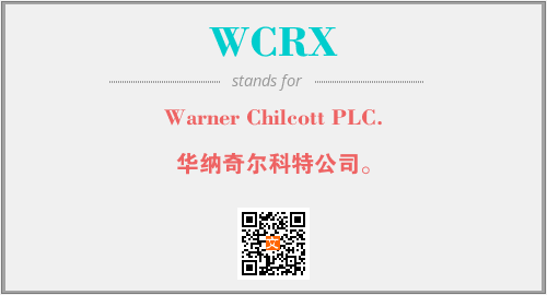上述内容是“Warner Chilcott PLC.”作为“WCRX”的缩写,解释为“华纳奇尔科特公司。”时的信息,以及英文缩略词WCRX所代表的英文单词,其对应的中文拼音、详细解释以及在英文中的流行度和相关分类、应用领域及应用示例等。