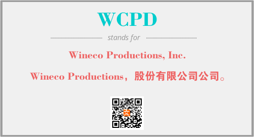上述内容是“Wineco Productions, Inc.”作为“WCPD”的缩写,解释为“Wineco Productions,股份有限公司公司。”时的信息,以及英文缩略词WCPD所代表的英文单词,其对应的中文拼音、详细解释以及在英文中的流行度和相关分类、应用领域及应用示例等。