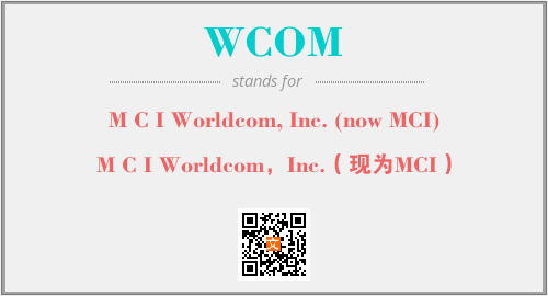 上述内容是“M C I Worldcom, Inc. (now MCI)”作为“WCOM”的缩写,解释为“M C I Worldcom,Inc.(现为MCI)”时的信息,以及英文缩略词WCOM所代表的英文单词,其对应的中文拼音、详细解释以及在英文中的流行度和相关分类、应用领域及应用示例等。