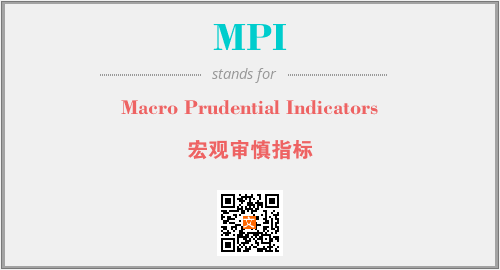 英文缩略词“MPI”经常作为“Macro Prudential Indicators”的英文缩写来使用,中文表示:“宏观审慎指标”。本文将详细介绍英文缩写词MPI所代表英文单词,其对应的中文拼音、详细解释以及在英语中的流行度。此外,还有关于缩略词MPI的分类、应用领域及相关应用示例等。