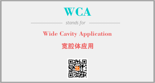 上述内容是“Wide Cavity Application”作为“WCA”的缩写,解释为“宽腔体应用”时的信息,以及英文缩略词WCA所代表的英文单词,其对应的中文拼音、详细解释以及在英文中的流行度和相关分类、应用领域及应用示例等。