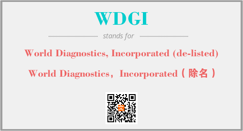 上述内容是“World Diagnostics, Incorporated (de-listed)”作为“WDGI”的缩写,解释为“World Diagnostics,Incorporated(除名)”时的信息,以及英文缩略词WDGI所代表的英文单词,其对应的中文拼音、详细解释以及在英文中的流行度和相关分类、应用领域及应用示例等。