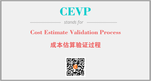 英文缩略词“CEVP”经常作为“Cost Estimate Validation Process”的英文缩写来使用,中文表示:“成本估算验证过程”。本文将详细介绍英文缩写词CEVP所代表英文单词,其对应的中文拼音、详细解释以及在英语中的流行度。此外,还有关于缩略词CEVP的分类、应用领域及相关应用示例等。