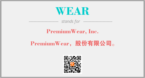 上述内容是“PremiumWear, Inc.”作为“WEAR”的缩写,解释为“PremiumWear,股份有限公司。”时的信息,以及英文缩略词WEAR所代表的英文单词,其对应的中文拼音、详细解释以及在英文中的流行度和相关分类、应用领域及应用示例等。