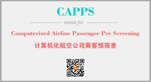 英文缩略词“CAPPS”经常作为“Computerized Airline Passenger Pre Screening”的英文缩写来使用,中文表示:“计算机化航空公司乘客预筛查”。本文将详细介绍英文缩写词CAPPS所代表英文单词,其对应的中文拼音、详细解释以及在英语中的流行度。此外,还有关于缩略词CAPPS的分类、应用领域及相关应用示例等。