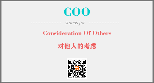 上述内容是“Consideration Of Others”作为“COO”的缩写,解释为“对他人的考虑”时的信息,以及英文缩略词COO所代表的英文单词,其对应的中文拼音、详细解释以及在英文中的流行度和相关分类、应用领域及应用示例等。