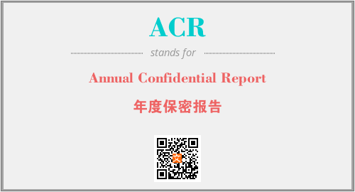 上述内容是“Annual Confidential Report”作为“ACR”的缩写,解释为“年度保密报告”时的信息,以及英文缩略词ACR所代表的英文单词,其对应的中文拼音、详细解释以及在英文中的流行度和相关分类、应用领域及应用示例等。