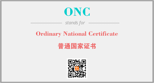 以上为Ordinary National Certificate英文缩略词ONC的中文解释,以及该英文缩写在英语的流行度、分类和应用领域方面的信息。