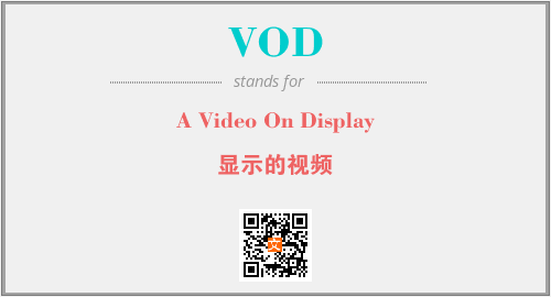 英文缩略词“VOD”经常作为“A Video On Display”的英文缩写来使用,中文表示:“显示的视频”。本文将详细介绍英文缩写词VOD所代表英文单词,其对应的中文拼音、详细解释以及在英语中的流行度。此外,还有关于缩略词VOD的分类、应用领域及相关应用示例等。
