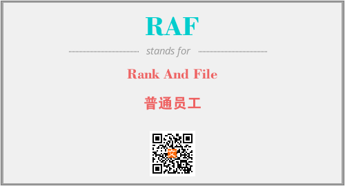 上述内容是“Rank And File”作为“RAF”的缩写,解释为“普通员工”时的信息,以及英文缩略词RAF所代表的英文单词,其对应的中文拼音、详细解释以及在英文中的流行度和相关分类、应用领域及应用示例等。