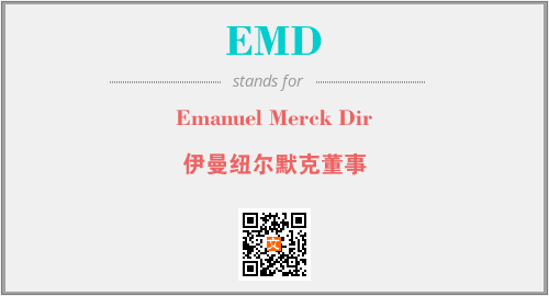上述内容是“Emanuel Merck Dir”作为“EMD”的缩写,解释为“伊曼纽尔默克董事”时的信息,以及英文缩略词EMD所代表的英文单词,其对应的中文拼音、详细解释以及在英文中的流行度和相关分类、应用领域及应用示例等。