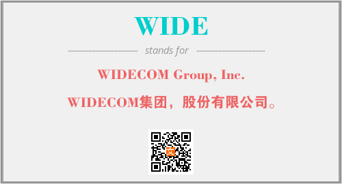 上述内容是“WIDECOM Group, Inc.”作为“WIDE”的缩写,解释为“WIDECOM集团,股份有限公司。”时的信息,以及英文缩略词WIDE所代表的英文单词,其对应的中文拼音、详细解释以及在英文中的流行度和相关分类、应用领域及应用示例等。