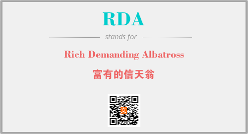 以上为Rich Demanding Albatross英文缩略词RDA的中文解释,以及该英文缩写在英语的流行度、分类和应用领域方面的信息。