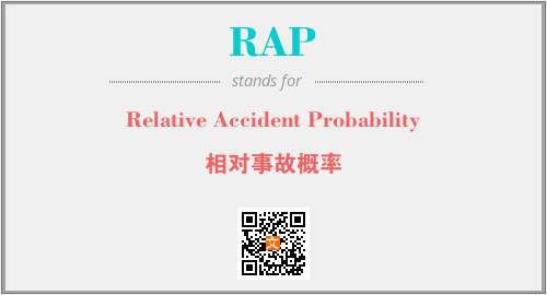 上述内容是“Relative Accident Probability”作为“RAP”的缩写,解释为“相对事故概率”时的信息,以及英文缩略词RAP所代表的英文单词,其对应的中文拼音、详细解释以及在英文中的流行度和相关分类、应用领域及应用示例等。