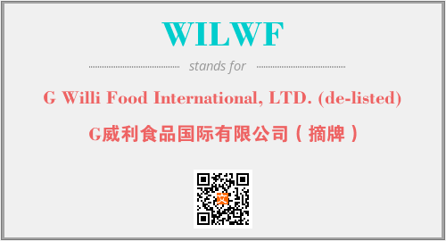 上述内容是“G Willi Food International, LTD. (de-listed)”作为“WILWF”的缩写,解释为“G威利食品国际有限公司(摘牌)”时的信息,以及英文缩略词WILWF所代表的英文单词,其对应的中文拼音、详细解释以及在英文中的流行度和相关分类、应用领域及应用示例等。