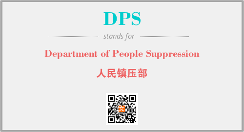 英文缩略词“DPS”经常作为“Department of People Suppression”的英文缩写来使用,中文表示:“人民镇压部”。本文将详细介绍英文缩写词DPS所代表英文单词,其对应的中文拼音、详细解释以及在英语中的流行度。此外,还有关于缩略词DPS的分类、应用领域及相关应用示例等。