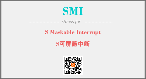 英文缩略词“SMI”经常作为“S Maskable Interrupt”的英文缩写来使用,中文表示:“S可屏蔽中断”。本文将详细介绍英文缩写词SMI所代表英文单词,其对应的中文拼音、详细解释以及在英语中的流行度。此外,还有关于缩略词SMI的分类、应用领域及相关应用示例等。