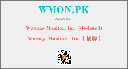 上述内容是“Wattage Monitor, Inc. (de-listed)”作为“WMON.PK”的缩写,解释为“Wattage Monitor,Inc.(摘牌)”时的信息,以及英文缩略词WMON.PK所代表的英文单词,其对应的中文拼音、详细解释以及在英文中的流行度和相关分类、应用领域及应用示例等。
