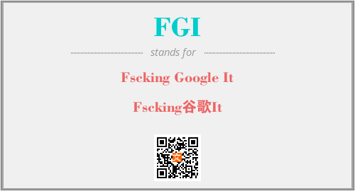英文缩略词“FGI”经常作为“Fscking Google It”的英文缩写来使用,中文表示:“Fscking谷歌It”。本文将详细介绍英文缩写词FGI所代表英文单词,其对应的中文拼音、详细解释以及在英语中的流行度。此外,还有关于缩略词FGI的分类、应用领域及相关应用示例等。