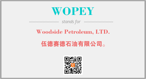 上述内容是“Woodside Petroleum, LTD.”作为“WOPEY”的缩写,解释为“伍德赛德石油有限公司。”时的信息,以及英文缩略词WOPEY所代表的英文单词,其对应的中文拼音、详细解释以及在英文中的流行度和相关分类、应用领域及应用示例等。