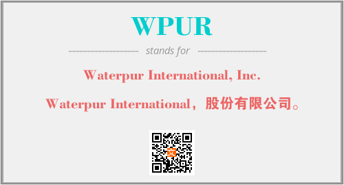 上述内容是“Waterpur International, Inc.”作为“WPUR”的缩写,解释为“Waterpur International,股份有限公司。”时的信息,以及英文缩略词WPUR所代表的英文单词,其对应的中文拼音、详细解释以及在英文中的流行度和相关分类、应用领域及应用示例等。