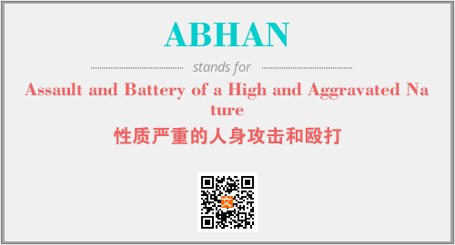 以上为Assault and Battery of a High and Aggravated Nature英文缩略词ABHAN的中文解释,以及该英文缩写在英语的流行度、分类和应用领域方面的信息。