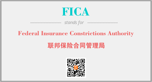 英文缩略词“FICA”经常作为“Federal Insurance Constrictions Authority”的英文缩写来使用,中文表示:“联邦保险合同管理局”。本文将详细介绍英文缩写词FICA所代表英文单词,其对应的中文拼音、详细解释以及在英语中的流行度。此外,还有关于缩略词FICA的分类、应用领域及相关应用示例等。