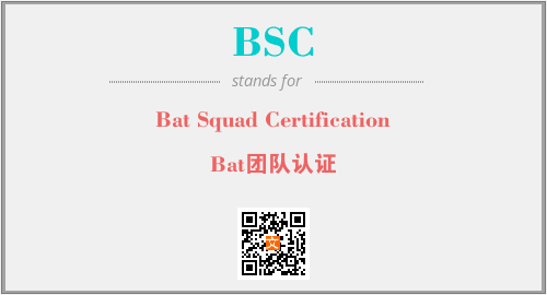 英文缩略词“BSC”经常作为“Bat Squad Certification”的英文缩写来使用,中文表示:“Bat团队认证”。本文将详细介绍英文缩写词BSC所代表英文单词,其对应的中文拼音、详细解释以及在英语中的流行度。此外,还有关于缩略词BSC的分类、应用领域及相关应用示例等。