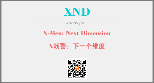 上述内容是“X-Men: Next Dimension”作为“XND”的缩写,解释为“X战警:下一个维度”时的信息,以及英文缩略词XND所代表的英文单词,其对应的中文拼音、详细解释以及在英文中的流行度和相关分类、应用领域及应用示例等。
