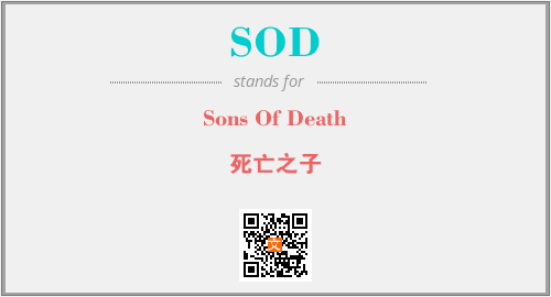 英文缩略词“SOD”经常作为“Sons Of Death”的英文缩写来使用,中文表示:“死亡之子”。本文将详细介绍英文缩写词SOD所代表英文单词,其对应的中文拼音、详细解释以及在英语中的流行度。此外,还有关于缩略词SOD的分类、应用领域及相关应用示例等。