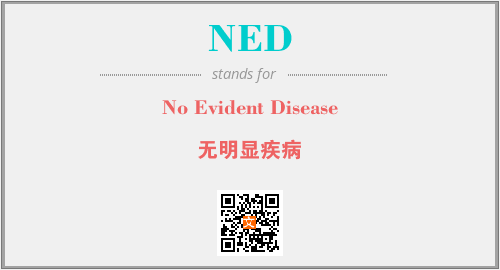 以上为No Evident Disease英文缩略词NED的中文解释,以及该英文缩写在英语的流行度、分类和应用领域方面的信息。